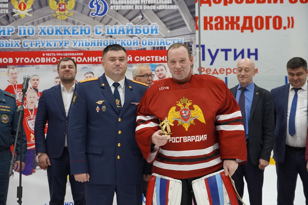 Также были отмечены лучшие игроки хоккейного матча. Лучшим вратарем турнира был признан участник команды Росгвардии.