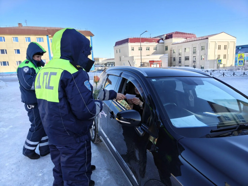 Накануне Международного женского дня сотрудники Госавтоинспекции совместно с кадетами ГИБДД провели в Анадыре традиционную акцию «Цветы для автоледи».