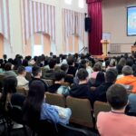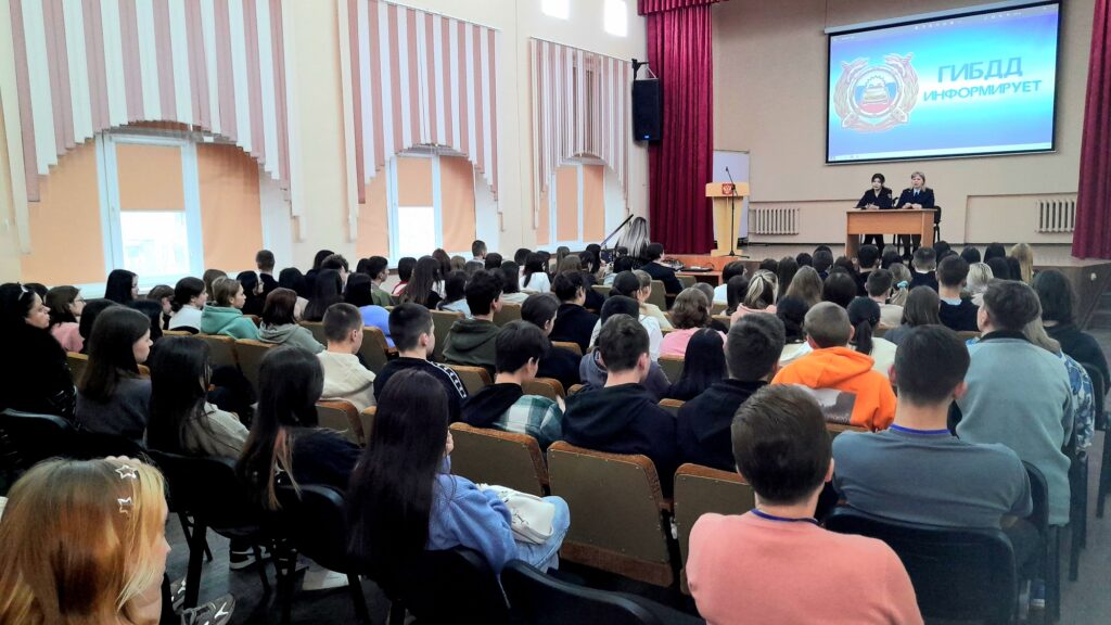 Инспектор (по пропаганде безопасности дорожного движения) группы по пропаганде дорожного движения ОГИБДД УМВД России по городу Астрахани капитан полиции Юлия Кенжегараева также рассказала на правилах безопасности, но уже на автомобильных дорогах. Внимание слушателей она акцентировала на необходимости соблюдения правил дорожного движения, привела статистику ДТП, совершенных в течение 2023 года на территории региона, и призвала студентов быть внимательными. После этого студентам продемонстрировали видеофильм, посвященный соблюдению правил дорожного движения.