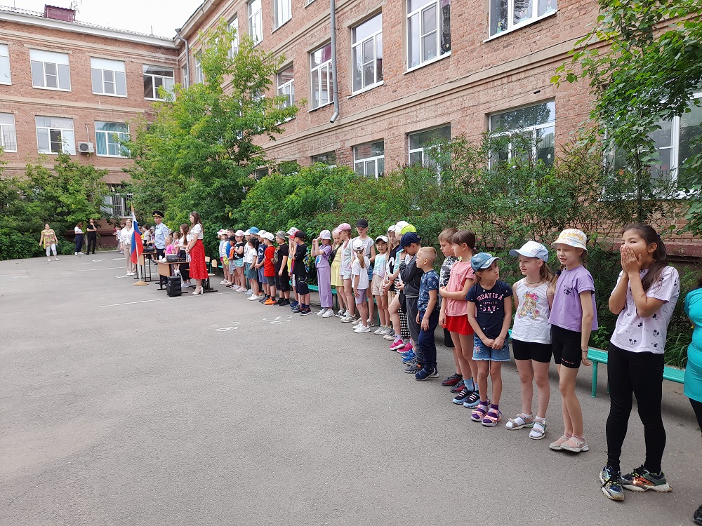 Накануне празднования Дня России, сотрудники Астраханского ЛО МВД России на транспорте встретились с младшими школьниками МБОУ г. Астрахани «СОШ № 4», находящихся в летнем лагере. В мероприятии также приняли участие председатель Общественного совета при Астраханском ЛО МВД России на транспорте Ольга Столыпина и студенты ПОЧУ «Астраханский кооперативный техникум экономики и права» Виктория Кузнецова, Александра Караблина и Яна Игнатенко.