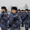 Завершился воинский ритуал исполнением гимнов и прохождением торжественным маршем.