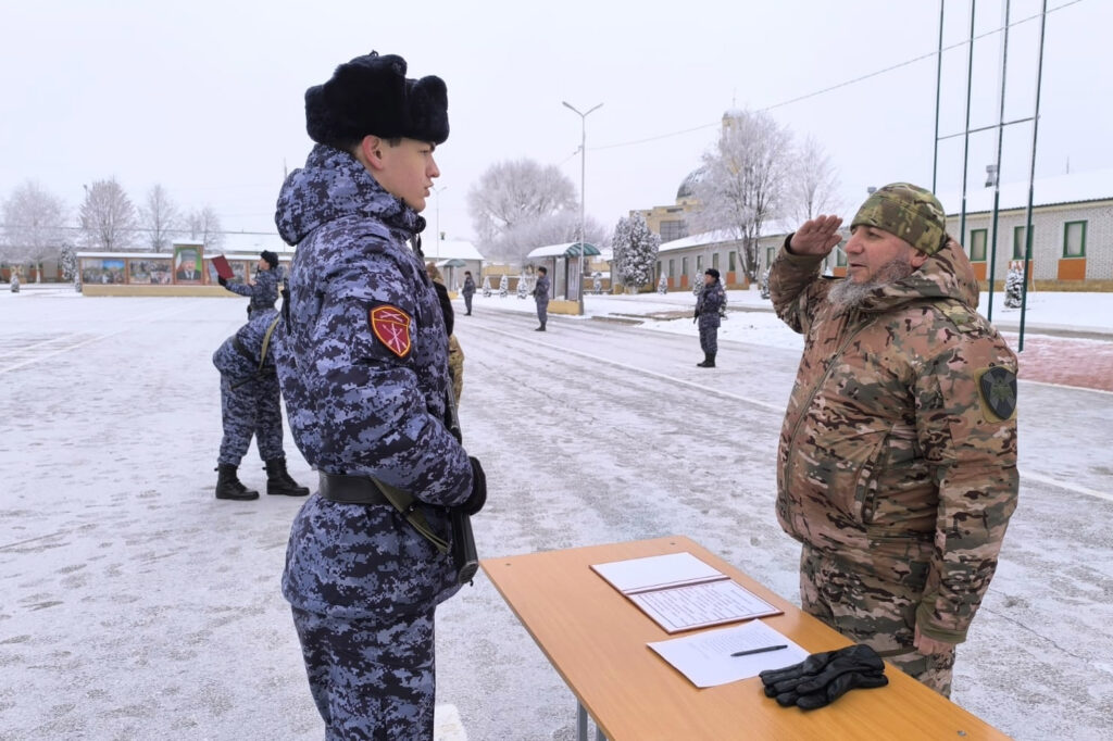 «Сегодня знаменательный день – вы дали клятву защищать Родину. Это важный поступок, достойный настоящего мужчины. Желаю за год получить новые знания и с честью нести высокое звание защитника Отечества, приумножая славные традиции наших предков», — обратился к новобранцам врио командира полка подполковник Ваха-Хажи Ахматханов.