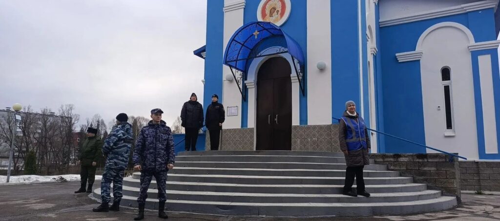Росгвардейцы совместно с полицейскими дежурили на входах в храмы и церкви, они проводили досмотр прибывающих граждан, в том числе с применением носимых металлодетекторов.