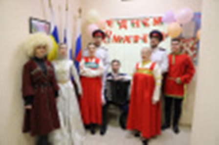 С самого утра в фойе Главного управления прекрасных представительниц УИС встречали их коллеги-мужчины. Праздничное настроение создавали участники творческого коллектива «Атаман» Ростовского института (филиала) ФГУВО «Всероссийский государственный университет юстиции» (РПА Минюста России) и народного ансамбля танца «Огни Кавказа» дворца культуры «Ростов-Досуг». Артисты ансамбля под мелодии гармониста пели для женщин песни, дарили им радость и весеннее настроение.