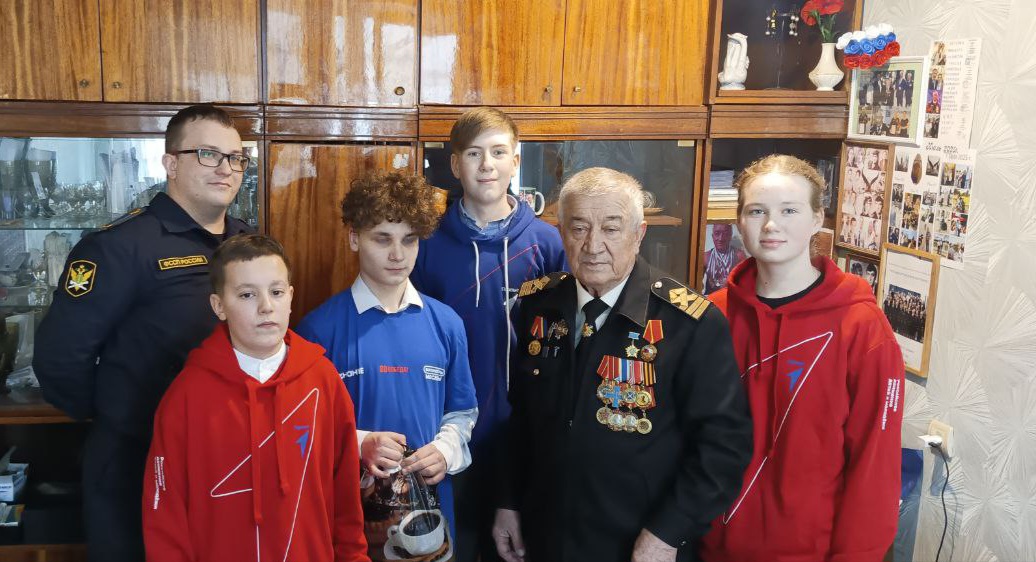 Активист совета Василий Андрианов вместе с учащимися лицея № 23, входящими в «Движение первых», и представителями ветеранской организации Московского района г. Калининграда побывал в гостях у выдающегося калининградца.