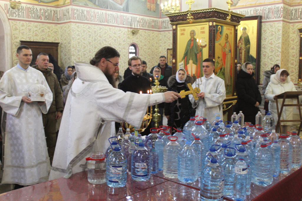 Провёл службу и совершил чин Великого освящения воды епископ Грозненский и Сунженский Амвросий. Росгвардейцы вместе с прихожанами храма совершили молитву и причастились святых Христовых тайн, крещенской воды, приложились к святыням и поставили свечи за здравие сослуживцев и своих близких.