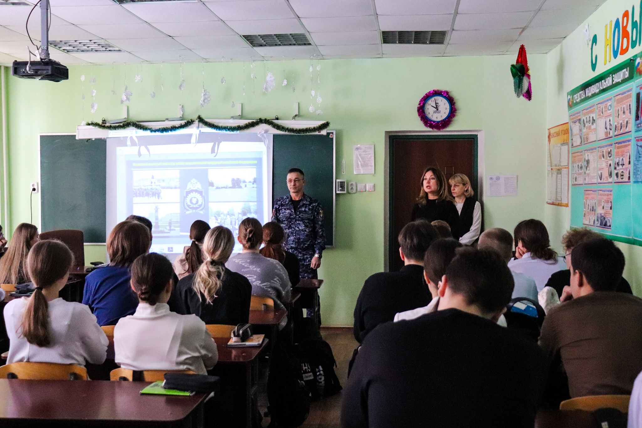 Офицер ведомства рассказал школьникам об истории и задачах Росгвардии, преемственности традиций и героических страницах её предшественников, а также о повседневной службе в различных подразделениях. Особый акцент был сделан на важности получения качественного образования в контексте служения Отечеству.