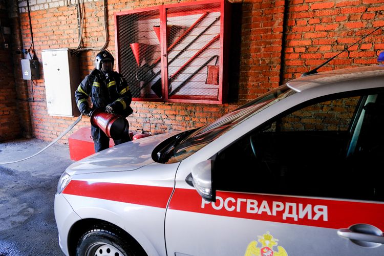 Учебная тренировка прошла на территории гаражного бокса, предназначенного для хранения служебного автотранспорта вневедомственной охраны Росгвардии.