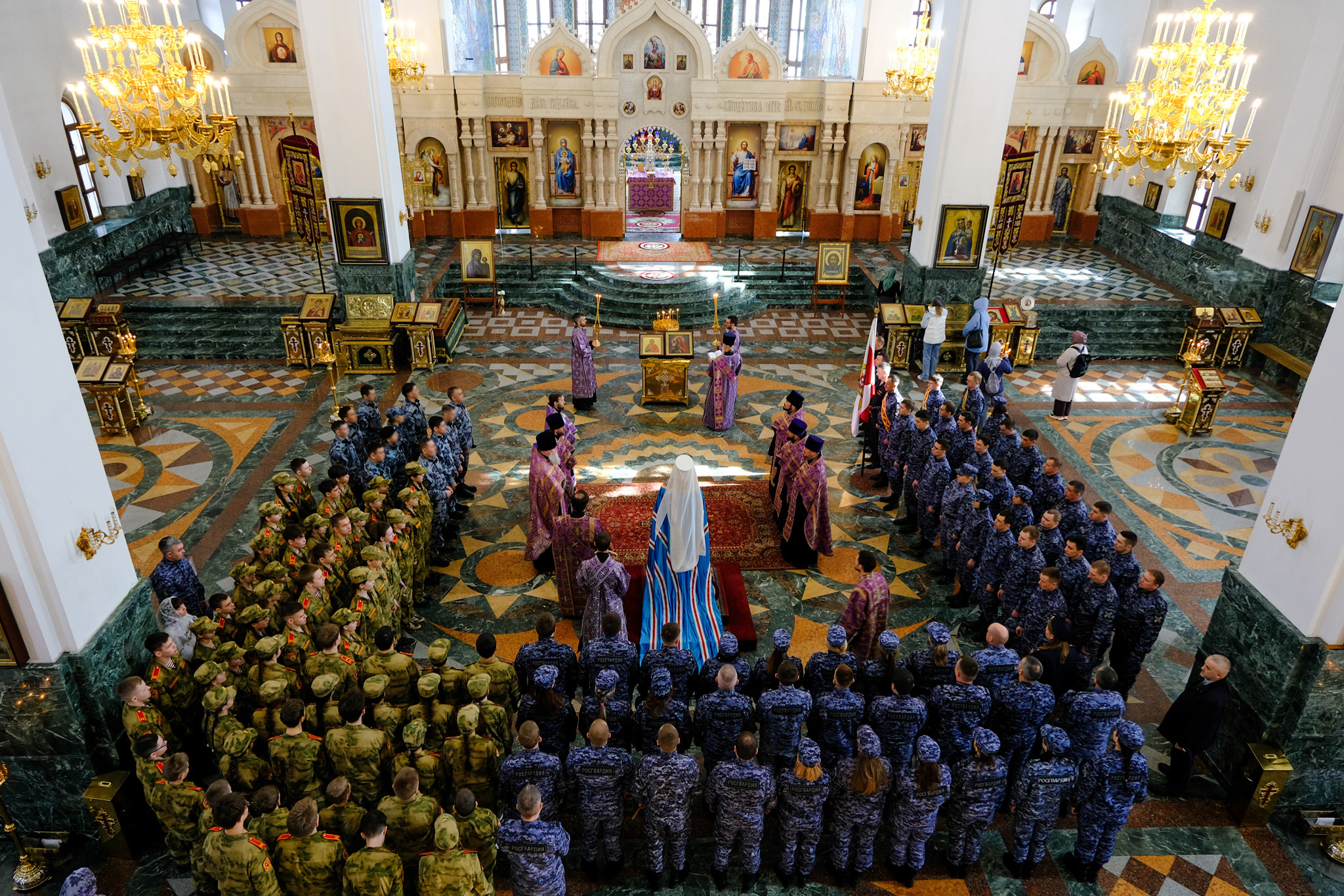 Мероприятие собрало широкий круг участников, подчеркнув единство и сплоченность личного состава. За богослужением молились руководство, военнослужащие и сотрудники Управления Росгвардии по Республике Марий Эл, представители ветеранских организаций, а также кадеты подшефных школ. В этот день под сводами собора объединились представители всех подразделений ведомства, включая сотрудников специальных подразделений, которые несут службу в условиях повышенной ответственности и часто убывают в длительные командировки.