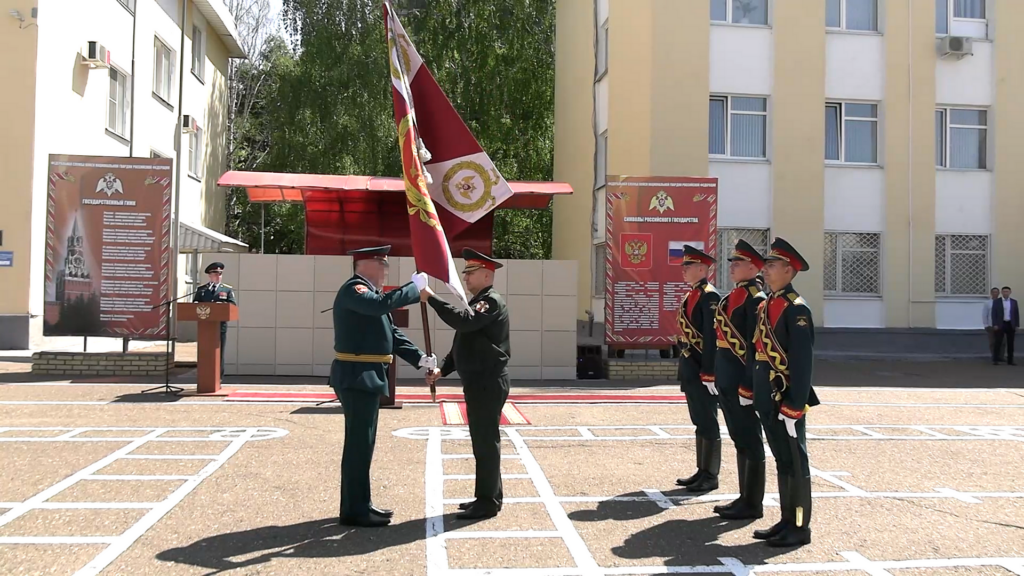 В соответствии с традициями воинского ритуала Боевое знамя командиру воинской части вручил временно исполняющий должность командующего Приволжским округом ВНГ России генерал-лейтенант Сергей Просяник.