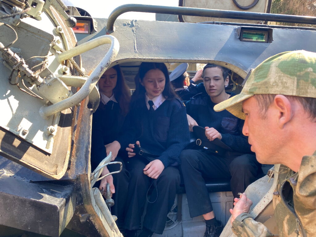 Студентам рассказали о задачах, которые выполняет воинская часть по охране ВГО, познакомили с вооружением и военной техникой подразделения. Специально для этого её выставили на строевом плацу.