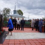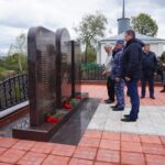 Присутствующие почтили минутой молчания память жертв Великой Отечественной войны и возложили цветы к новому мемориалу.