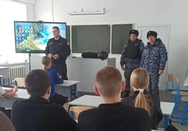 Росгвардейцы познакомили школьников с историей создания вневедомственной охраны и Росгвардии в целом, рассказали об особенностях служебной деятельности, показали фильм о ведомстве, а также продемонстрировали экипировку группы задержания.