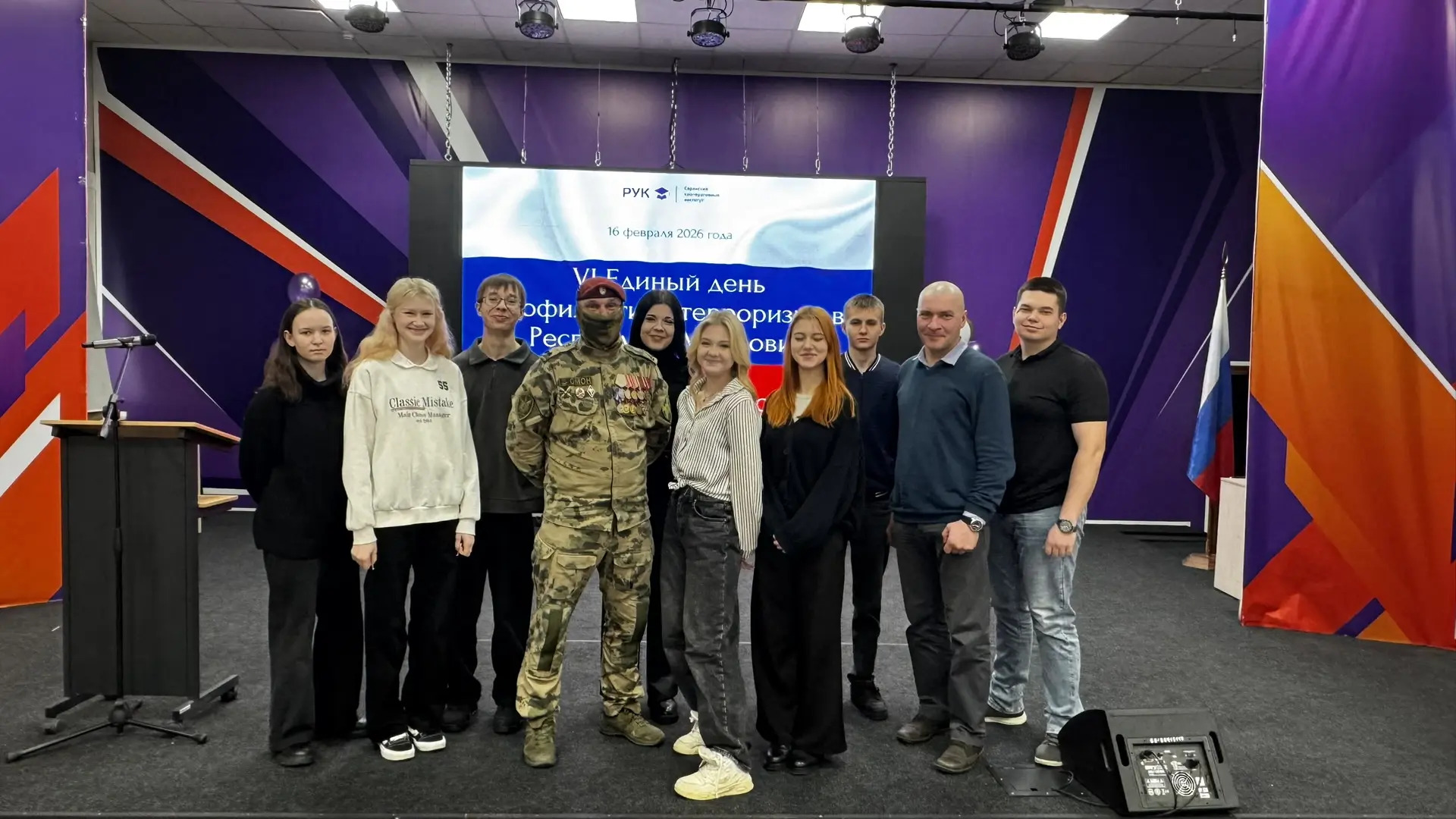 В качестве спикера перед аудиторией выступил заместитель командира ОМОН «Аркуда» Управления Росгвардии по Республике Мордовия подполковник полиции Андрей М. Офицер разъяснил студентам значение получившего распространение термина «биодрон», под которым понимаются люди, дистанционно управляемые злоумышленниками для совершения диверсий и террористических актов.