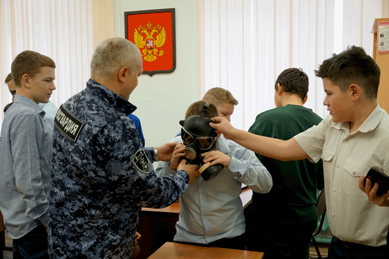 Для наглядности офицеры ознакомили примерить противогаз, каски и ощутить на себе тяжесть бронежилетов. Также росгвардейцы продемонстрировали спецсредства, которые сотрудникам необходимы при несении службы.
