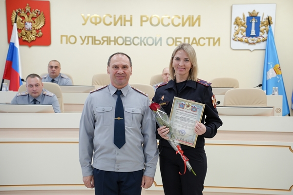 Признательность за эффективное взаимодействие и плодотворное сотрудничество в информационном пространстве, высокий профессионализм и оперативность офицер получила из рук начальника УФСИН России по Ульяновской области полковника внутренней службы Станислава Акимова.