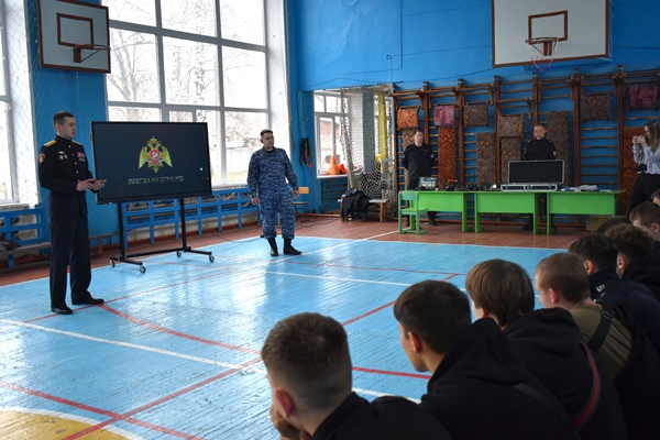 В игровом формате офицер провел для ребят урок мужества, рассказав о службе росгвардейцев. Дети ознакомились с серией мультипликационных картинок #РосгвардияЭто, где показана служебная деятельность военнослужащих и сотрудников войск национальной гвардии Российской Федерации.
