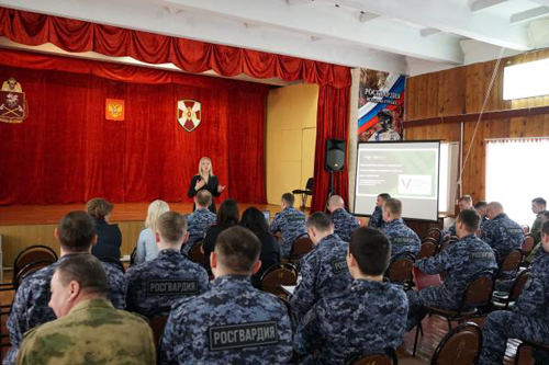 В преддверии выборов президента Российской Федерации для ульяновских росгвардейцев с просветительской лекцией выступила лектор Всероссийского общества «Знание» Хаханина Татьяна, заместитель руководителя аппарата Ульяновского регионального отделения Общероссийской общественной организации «Ассоциация юристов России».