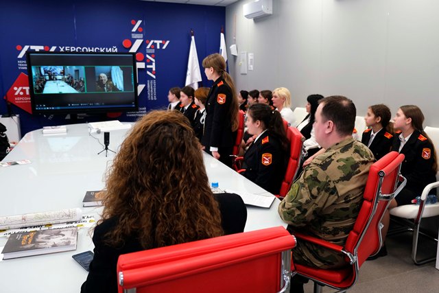 Мероприятие, организованное Управлением Росгвардии по Херсонской области совместно с Министерством молодёжной политики, АНО «Молодёжный центр «Патриот» и Координационным центром противодействия идеологии терроризма и экстремизма, собрало студентов и воспитанников подшефных кадетских классов. Провела диалог и направляла беседу в качестве модератора активистка движения «За правду» Светлана Никитина.