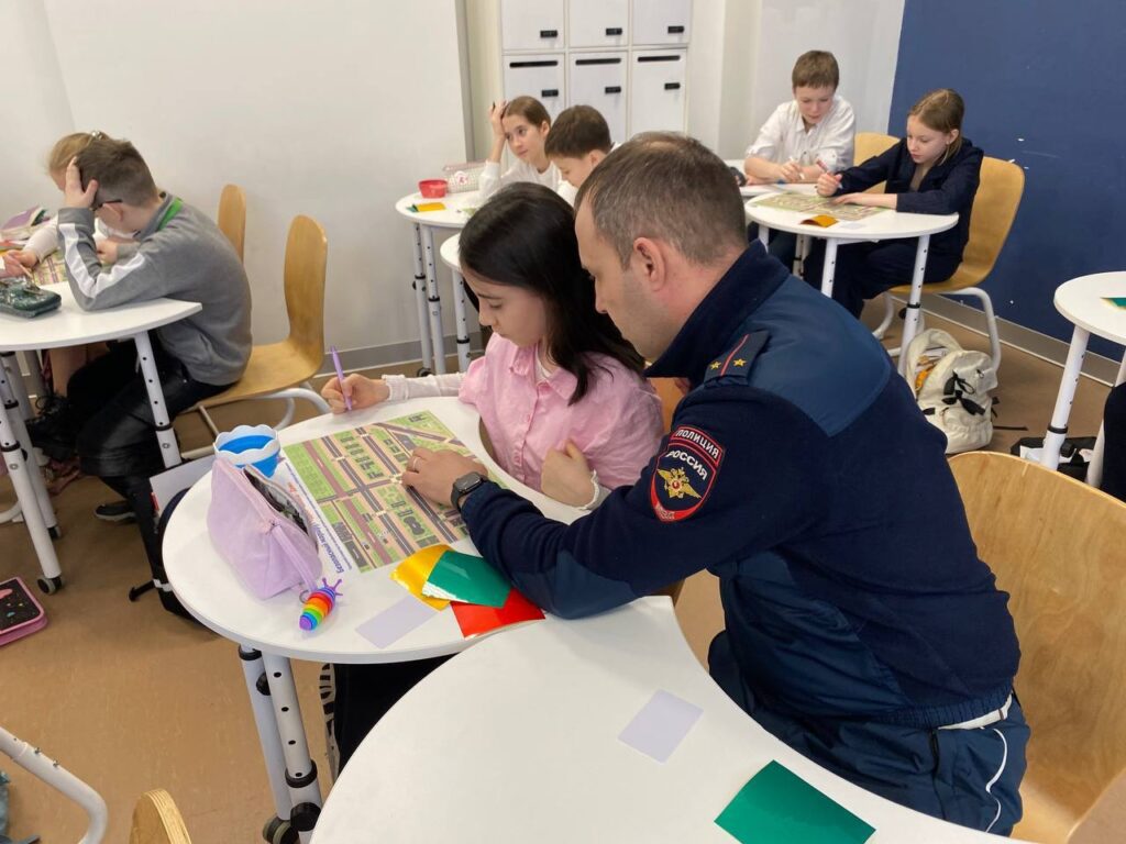 С первых минут мероприятия ребята отлично показали свои знания в области ПДД и безопасного поведения на проезжей части, отвечая на вопросы викторины, а также отлично справились с заданием, где им необходимо было проложить безопасный маршрут следования «дом-школа-дом», выделяя потенциально опасные участки и наиболее безопасные места для перехода через дорогу.