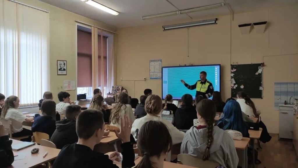 Ученики 7-го класса повторили основные правила для пешеходов: переходить дорогу только на зелёный сигнал, снимать наушники и не отвлекаться в телефон.