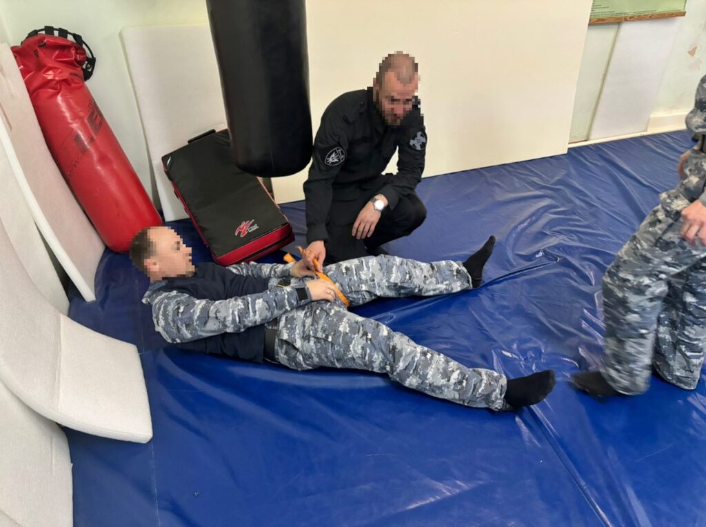 На занятии сотрудники ведомства изучили теоретическую и практическую части медицинской подготовки. Сотрудник СОБРа разъяснил, какие существуют эшелоны аптечек и что в них входит, рассказал о видах кровотечений и ранений. На практике показал способы наложения жгутов и турникетов, тампонирование ран, наложение давящих повязок. Сотрудники Отделения специального назначения отработали элементы оказания самопомощи и взаимопомощи в условиях боевых действий и в случае получения боевых ранений и травм.