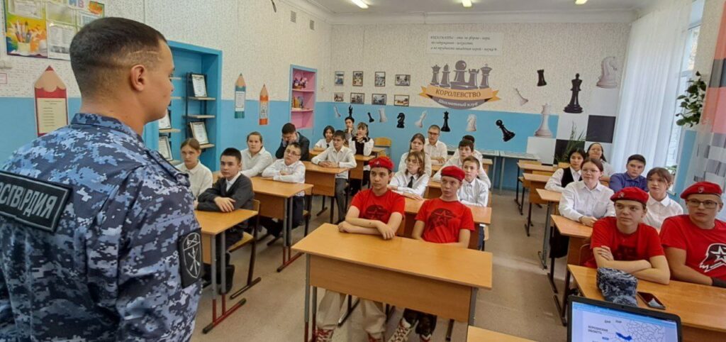 В завершение урока школьники поблагодарили росгвардейца и поздравили с профессиональным праздником.