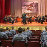 Руководитель творческого коллектива напомнил военнослужащим, что в феврале исполнилось 140 лет со дня рождения русского и советского военного дирижера, композитора, полковника Василия Ивановича Агапкина, автора одного из самых узнаваемых «музыкальных символов» России – марша «Прощание славянки».